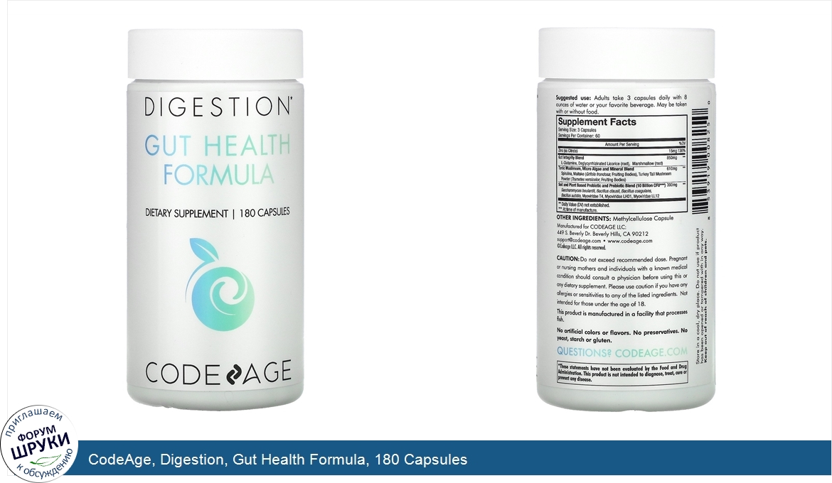 Друзья, если у вас есть отзыв/дополнение/комментарий/вопрос относительно CodeAge, Digestion, Gut Health Formula, 180 Capsules - напишите его ответом в эту тему (это будет полезно всему сообществу в целом и вам в отдельности).