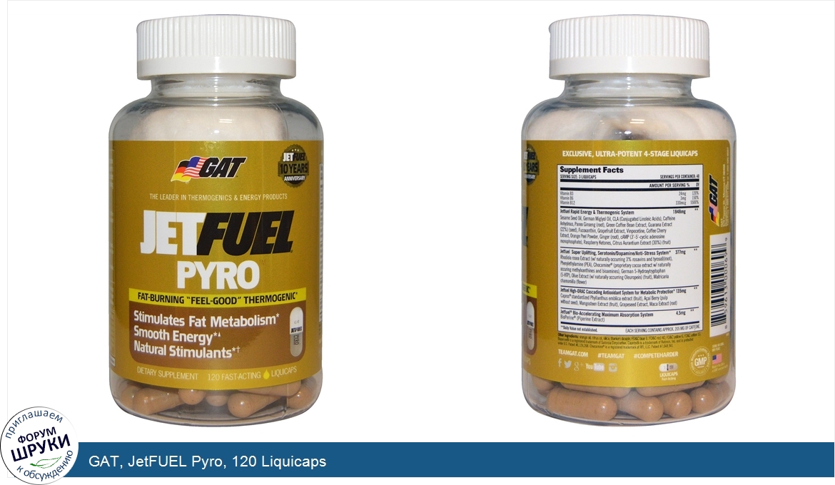 Друзья, если у вас есть отзыв/дополнение/комментарий/вопрос относительно GAT, JetFUEL Pyro, 120 Liquicaps - напишите его ответом в эту тему (это будет полезно всему сообществу в целом и вам в отдельности).