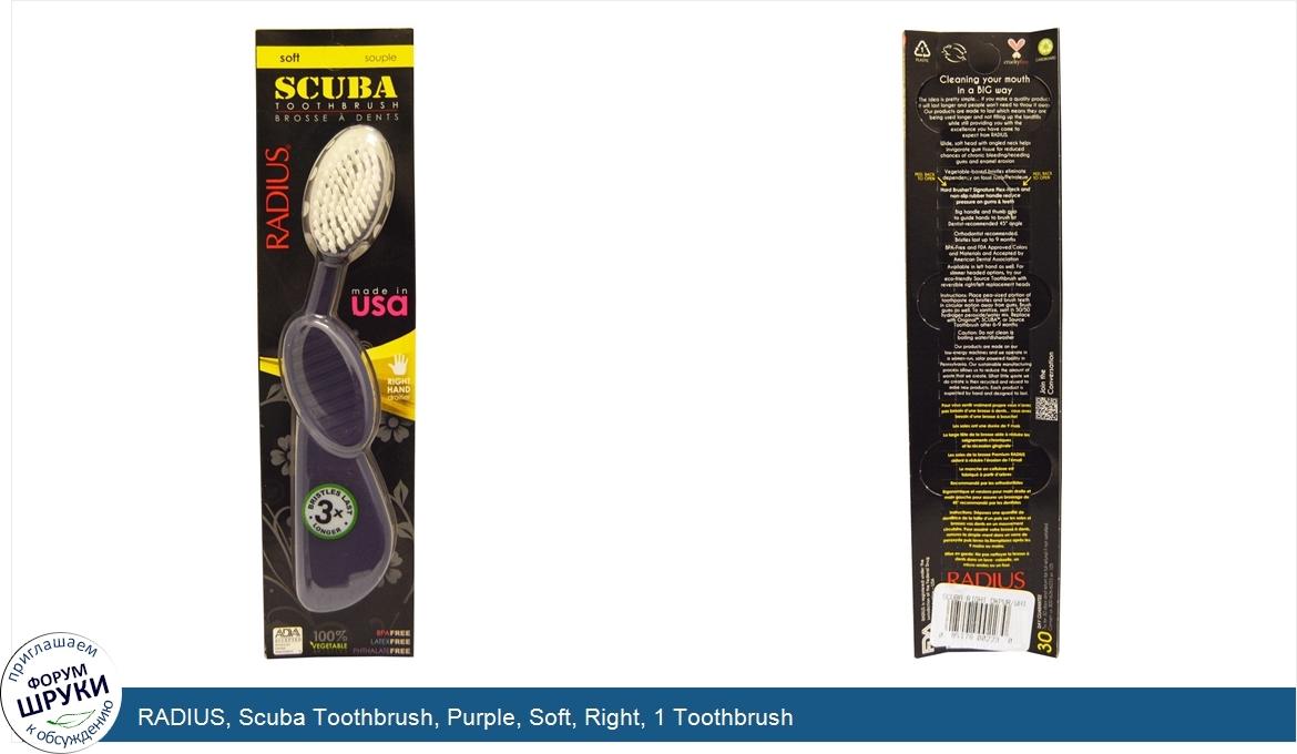 Друзья, если у вас есть отзыв/дополнение/комментарий/вопрос относительно RADIUS, Scuba Toothbrush, Purple, Soft, Right, 1 Toothbrush - напишите его ответом в эту тему (это будет полезно всему сообществу в целом и вам в отдельности).