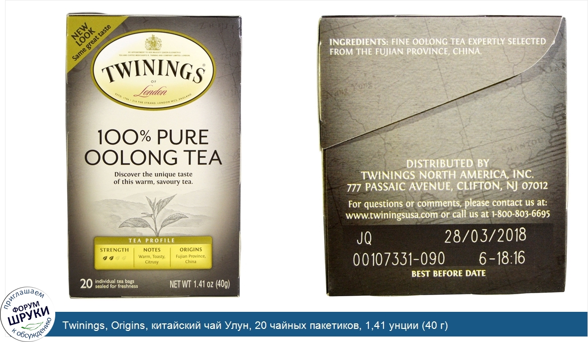 Друзья, если у вас есть отзыв/дополнение/комментарий/вопрос относительно Twinings, Origins, китайский чай Улун, 20 чайных пакетиков, 1,41 унции (40 г) - напишите его ответом в эту тему (это будет полезно всему сообществу в целом и вам в отдельности).