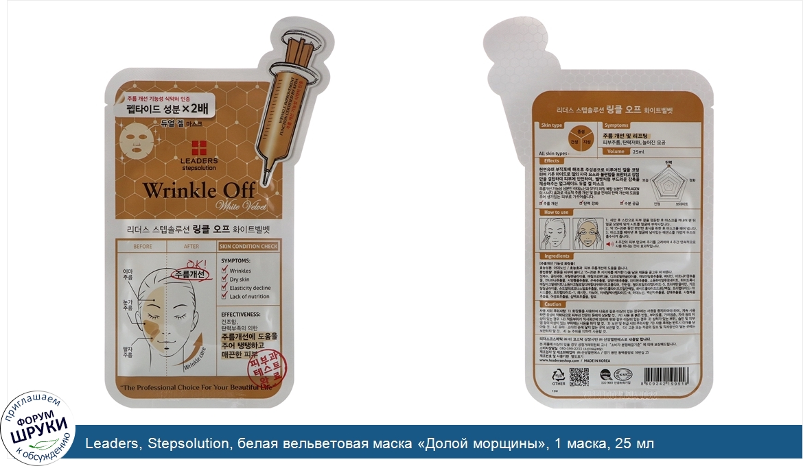 Друзья, если у вас есть отзыв/дополнение/комментарий/вопрос относительно Leaders, Stepsolution, белая вельветовая маска «Долой морщины», 1 маска, 25 мл - напишите его ответом в эту тему (это будет полезно всему сообществу в целом и вам в отдельности).