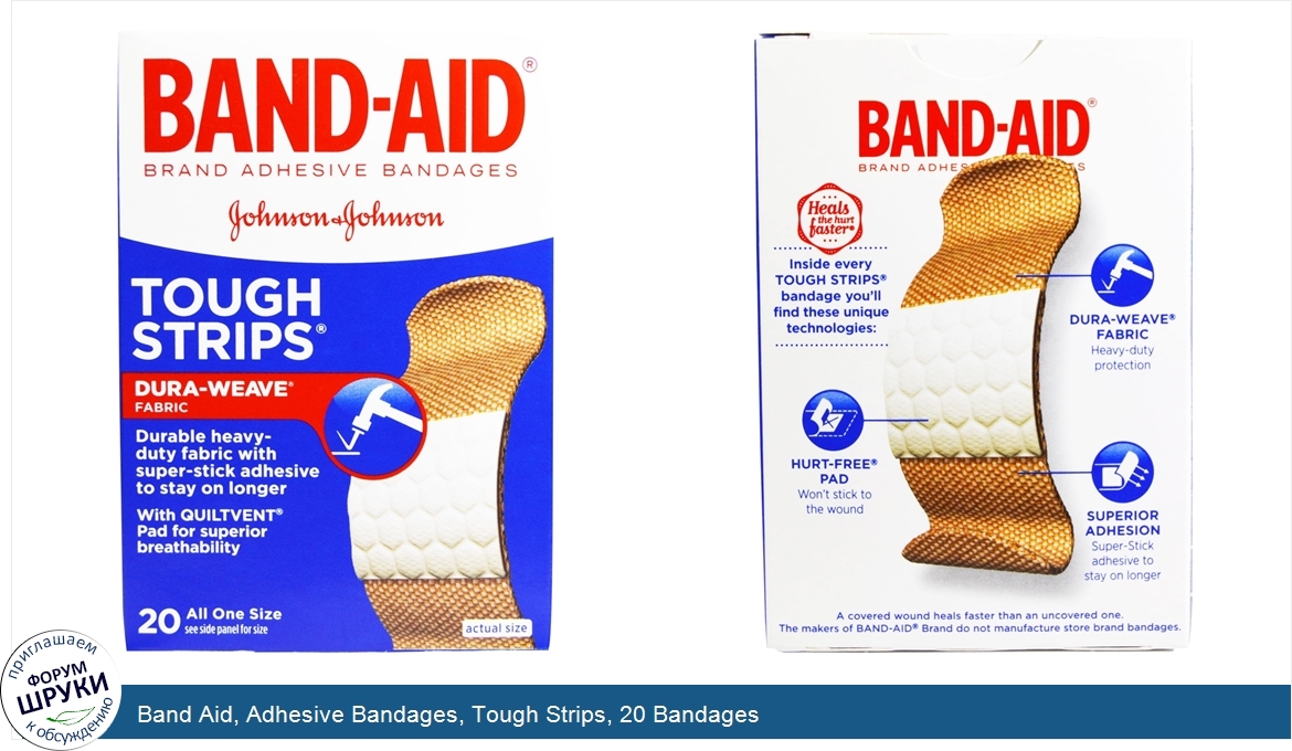 Друзья, если у вас есть отзыв/дополнение/комментарий/вопрос относительно Band Aid, Adhesive Bandages, Tough Strips, 20 Bandages - напишите его ответом в эту тему (это будет полезно всему сообществу в целом и вам в отдельности).