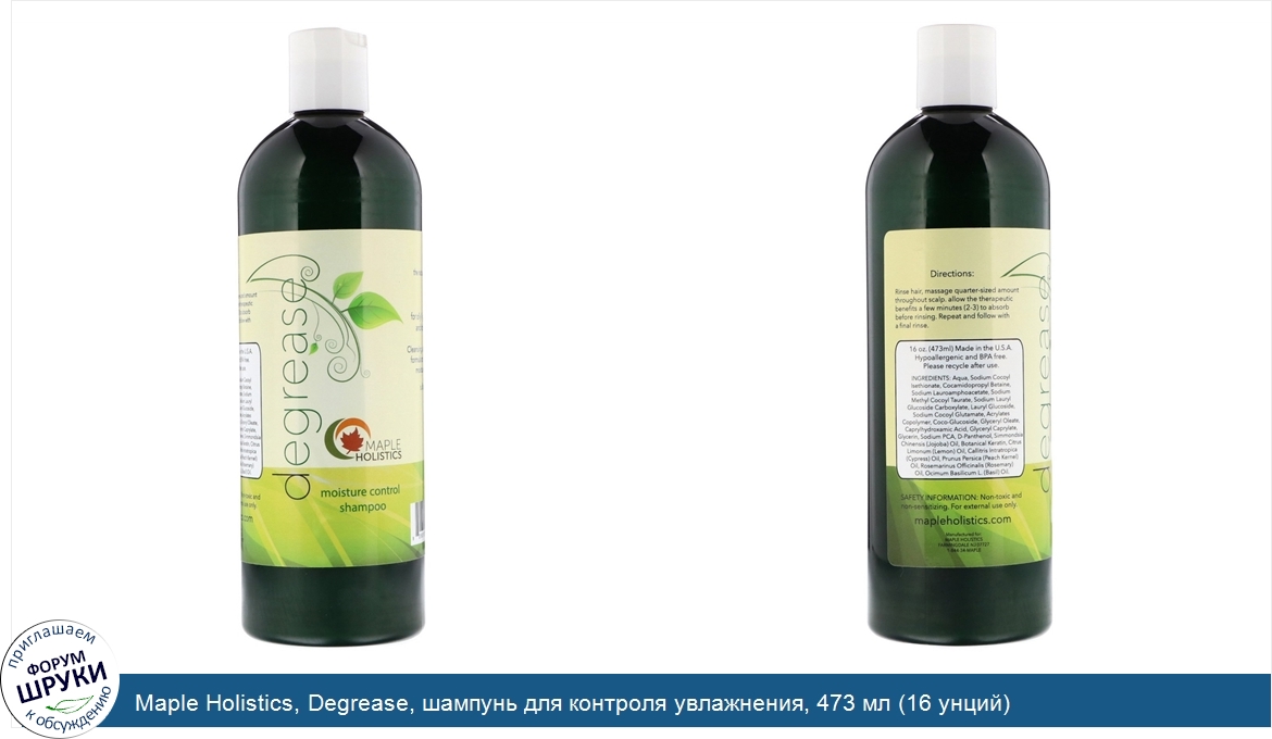 Maple Holistics, Degrease, шампунь для контроля увлажнения, 473 мл (16 унций)