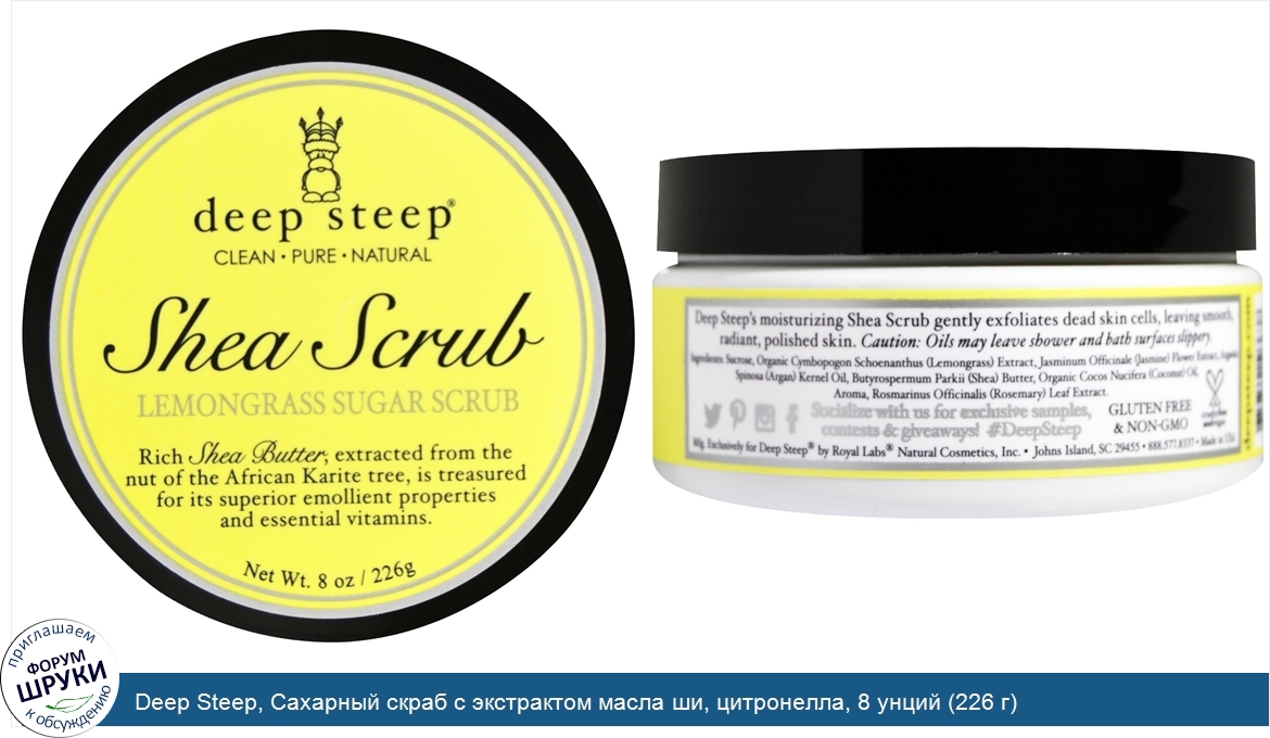 Друзья, если у вас есть отзыв/дополнение/комментарий/вопрос относительно Deep Steep, Сахарный скраб с экстрактом масла ши, цитронелла, 8 унций (226 г) - напишите его ответом в эту тему (это будет полезно всему сообществу в целом и вам в отдельности).