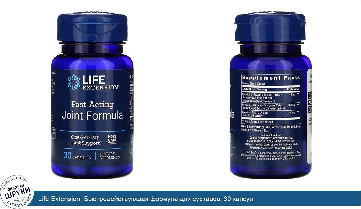 Life Extension, Быстродействующая формула для суставов, 30 капсул