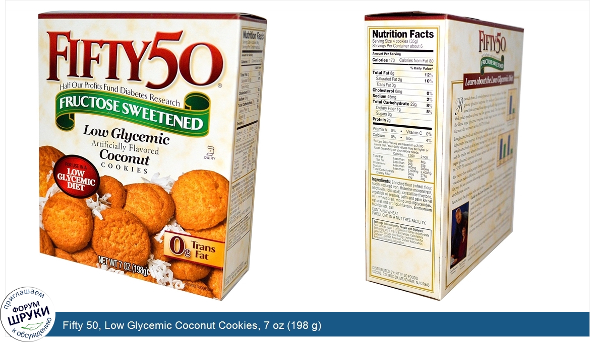 Друзья, если у вас есть отзыв/дополнение/комментарий/вопрос относительно Fifty 50, Low Glycemic Coconut Cookies, 7 oz (198 g) - напишите его ответом в эту тему (это будет полезно всему сообществу в целом и вам в отдельности).