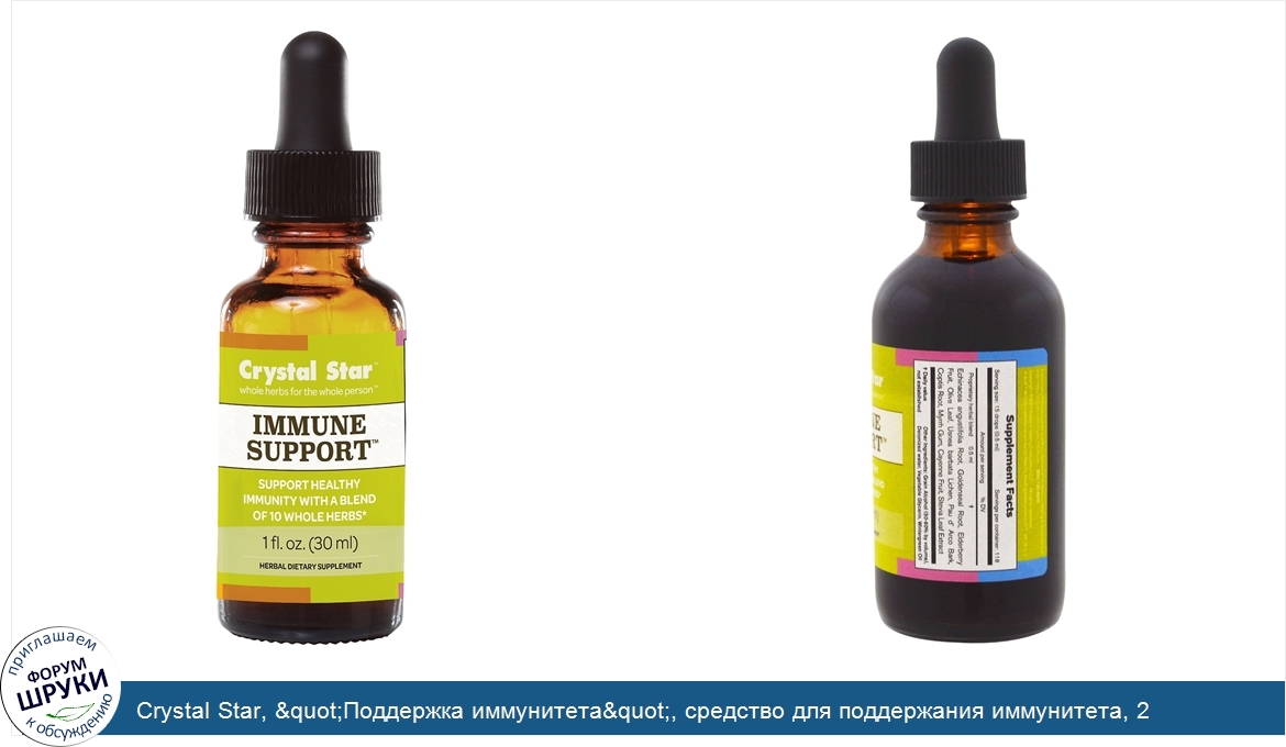 Друзья, если у вас есть отзыв/дополнение/комментарий/вопрос относительно Crystal Star, "Поддержка иммунитета", средство для поддержания иммунитета, 2 жидких унции (59 мл) - напишите его ответом в эту тему (это будет полезно всему сообществу в целом и вам в отдельности).