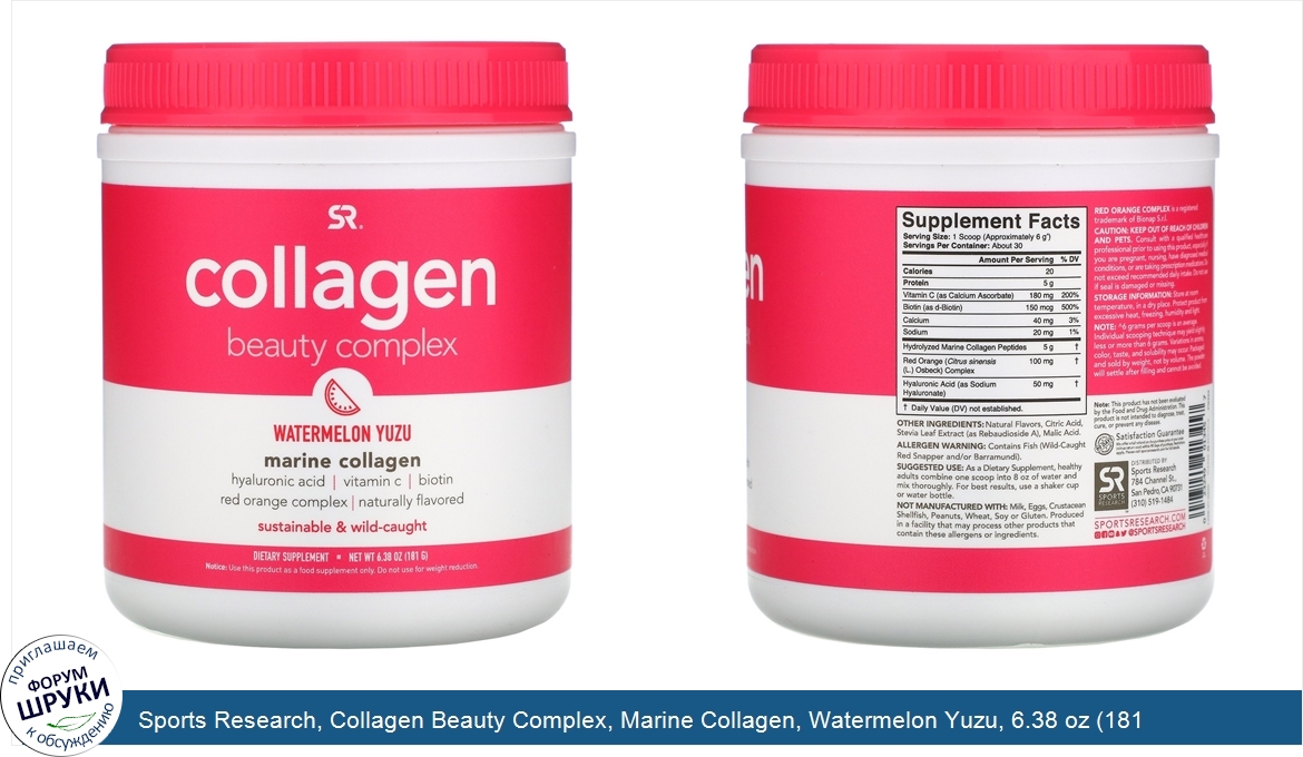 Друзья, если у вас есть отзыв/дополнение/комментарий/вопрос относительно Sports Research, Collagen Beauty Complex, Marine Collagen, Watermelon Yuzu, 6.38 oz (181 g) - напишите его ответом в эту тему (это будет полезно всему сообществу в целом и вам в отдельности).