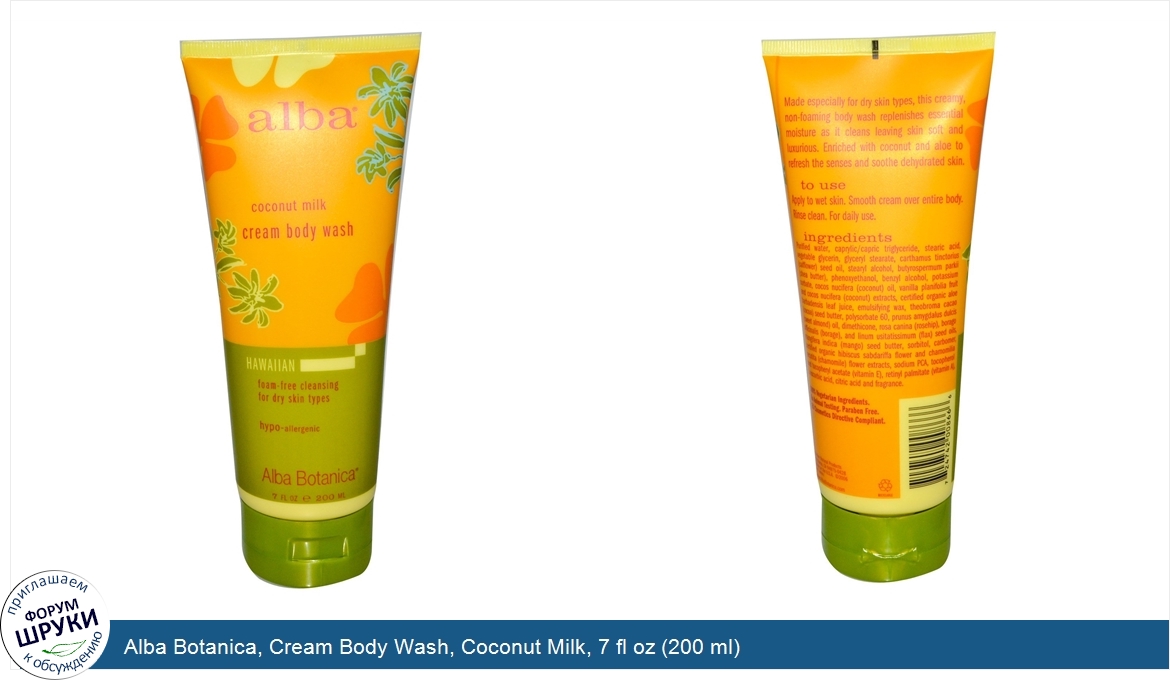 Друзья, если у вас есть отзыв/дополнение/комментарий/вопрос относительно Alba Botanica, Cream Body Wash, Coconut Milk, 7 fl oz (200 ml) - напишите его ответом в эту тему (это будет полезно всему сообществу в целом и вам в отдельности).
