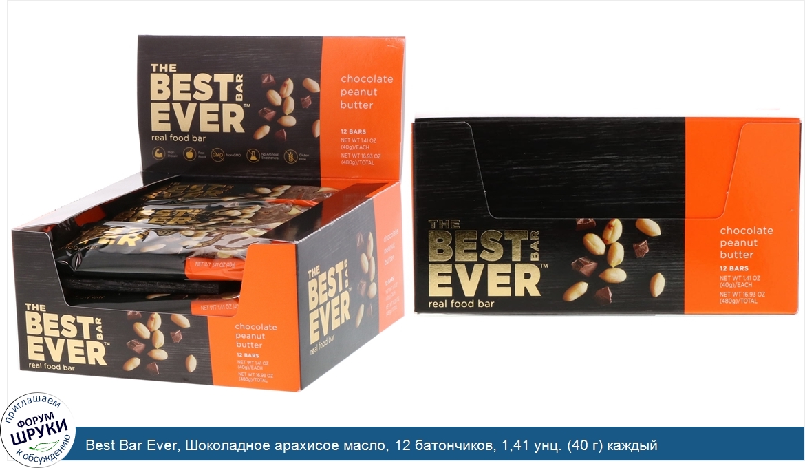 Друзья, если у вас есть отзыв/дополнение/комментарий/вопрос относительно Best Bar Ever, Шоколадное арахисое масло, 12 батончиков, 1,41 унц. (40 г) каждый - напишите его ответом в эту тему (это будет полезно всему сообществу в целом и вам в отдельности).