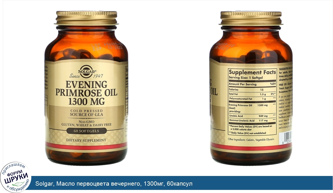 Друзья, если у вас есть отзыв/дополнение/комментарий/вопрос относительно Solgar, Масло первоцвета вечернего, 1300мг, 60капсул - напишите его ответом в эту тему (это будет полезно всему сообществу в целом и вам в отдельности).