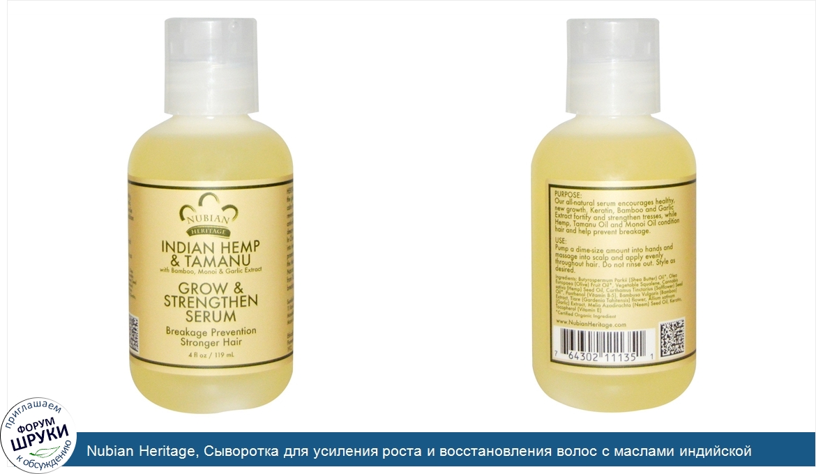 Друзья, если у вас есть отзыв/дополнение/комментарий/вопрос относительно Nubian Heritage, Сыворотка для усиления роста и восстановления волос с маслами индийской конопли и таману, 4 жидких унции (119 мл) - напишите его ответом в эту тему (это будет полезно всему сообществу в целом и вам в отдельности).