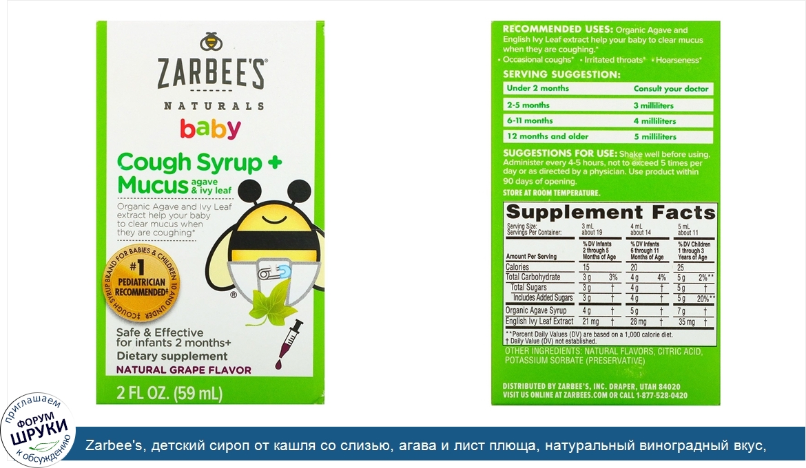 Друзья, если у вас есть отзыв/дополнение/комментарий/вопрос относительно Zarbee's, детский сироп от кашля со слизью, агава и лист плюща, натуральный виноградный вкус, 59мл (2жидк.унций) - напишите его ответом в эту тему (это будет полезно всему сообществу в целом и вам в отдельности).