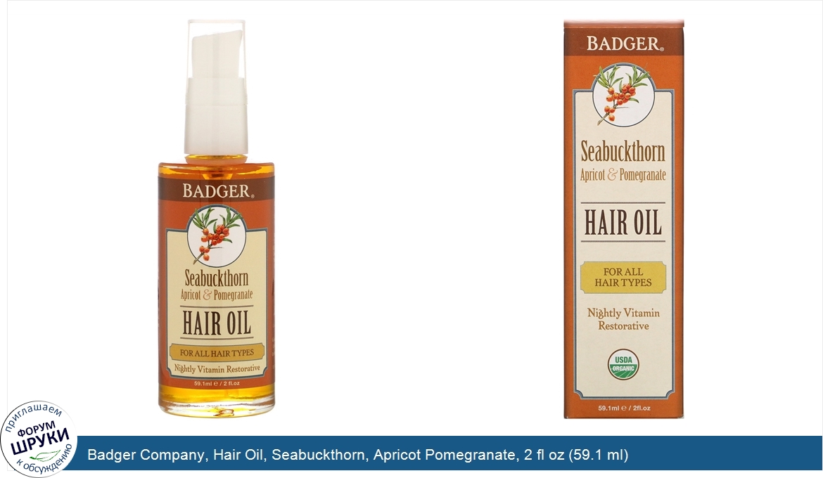 Друзья, если у вас есть отзыв/дополнение/комментарий/вопрос относительно Badger Company, Hair Oil, Seabuckthorn, Apricot Pomegranate, 2 fl oz (59.1 ml) - напишите его ответом в эту тему (это будет полезно всему сообществу в целом и вам в отдельности).