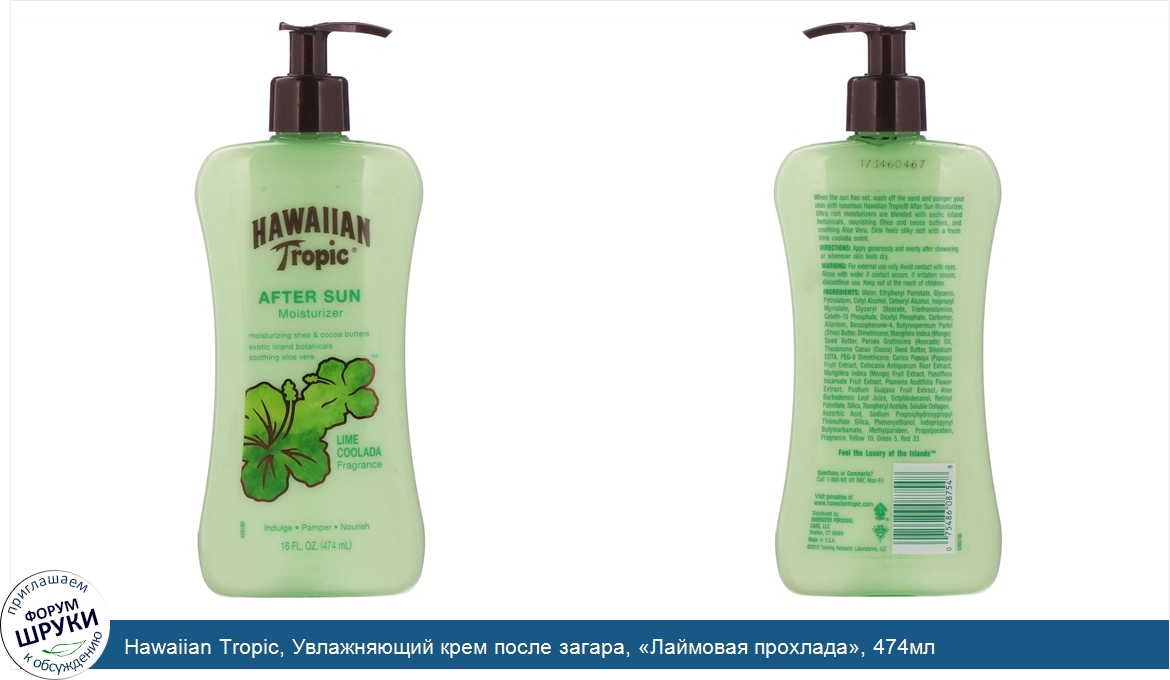 Друзья, если у вас есть отзыв/дополнение/комментарий/вопрос относительно Hawaiian Tropic, Увлажняющий крем после загара, «Лаймовая прохлада», 474мл - напишите его ответом в эту тему (это будет полезно всему сообществу в целом и вам в отдельности).