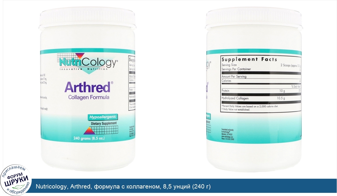 Друзья, если у вас есть отзыв/дополнение/комментарий/вопрос относительно Nutricology, Arthred, формула с коллагеном, 8,5 унций (240 г) - напишите его ответом в эту тему (это будет полезно всему сообществу в целом и вам в отдельности).