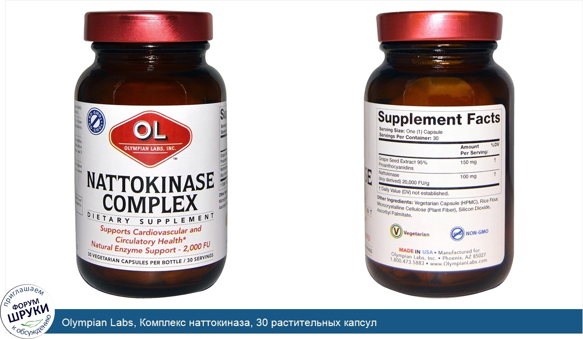 Без ГМО. Пищевая добавка. Поддерживает здоровье сердечно-сосудистой и кровеносной систем. Натуральная ферментная поддержка - 2,000 FU. 30 порций. Вегетарианский состав. Продукты Olympian Labs, Inc. изготовлены из...