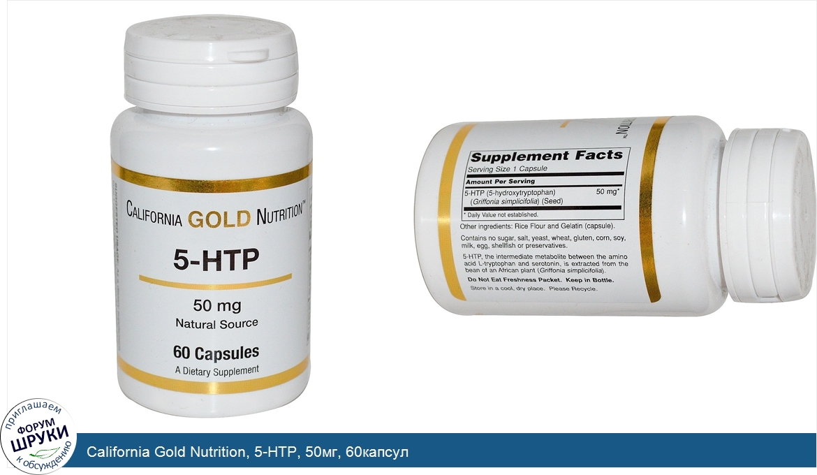 California Gold Nutrition, 5-HTP, 50мг, 60капсул