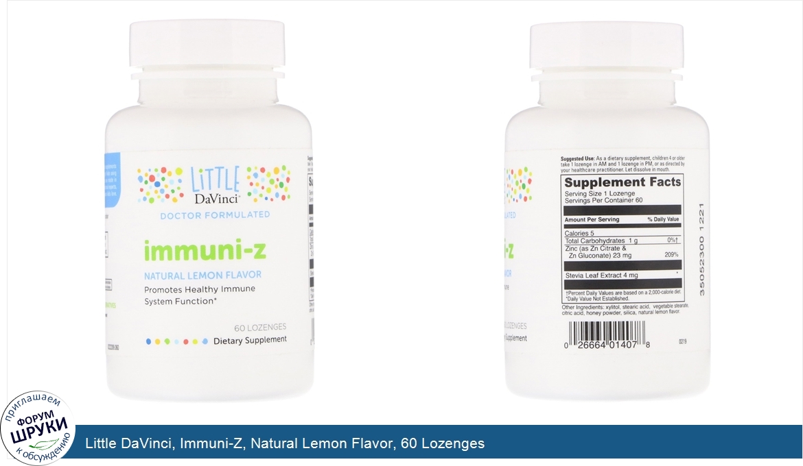 Друзья, если у вас есть отзыв/дополнение/комментарий/вопрос относительно Little DaVinci, Immuni-Z, Natural Lemon Flavor, 60 Lozenges - напишите его ответом в эту тему (это будет полезно всему сообществу в целом и вам в отдельности).