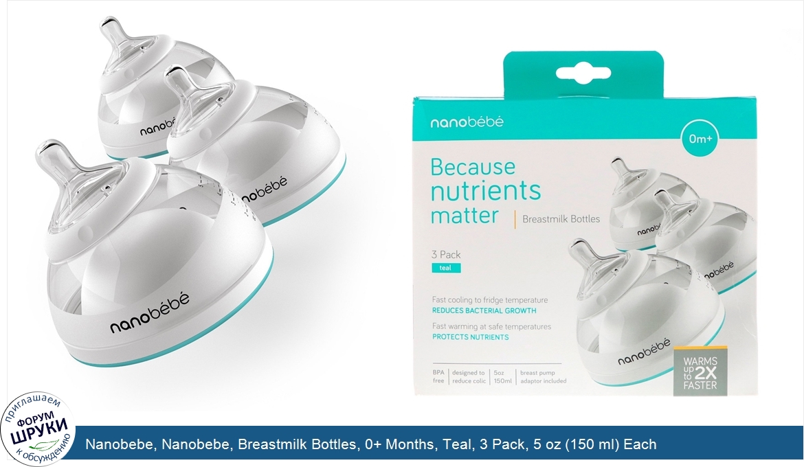 Друзья, если у вас есть отзыв/дополнение/комментарий/вопрос относительно Nanobebe, Nanobebe, Breastmilk Bottles, 0+ Months, Teal, 3 Pack, 5 oz (150 ml) Each - напишите его ответом в эту тему (это будет полезно всему сообществу в целом и вам в отдельности).