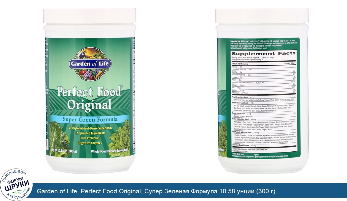 Друзья, если у вас есть отзыв/дополнение/комментарий/вопрос относительно Garden of Life, Perfect Food Original, Супер Зеленая Формула 10.58 унции (300 г) - напишите его ответом в эту тему (это будет полезно всему сообществу в целом и вам в отдельности).