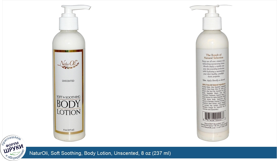 NaturOli, Soft Soothing, Body Lotion, Unscented, 8 oz (237 ml)