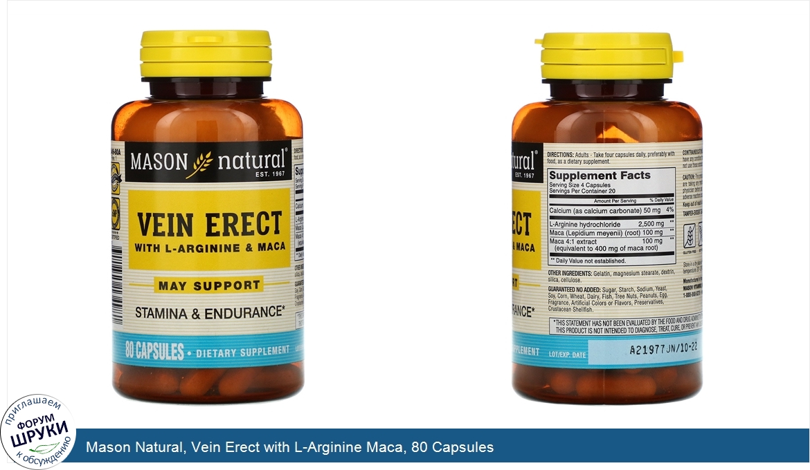 Друзья, если у вас есть отзыв/дополнение/комментарий/вопрос относительно Mason Natural, Vein Erect with L-Arginine Maca, 80 Capsules - напишите его ответом в эту тему (это будет полезно всему сообществу в целом и вам в отдельности).