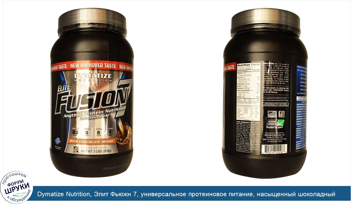 Друзья, если у вас есть отзыв/дополнение/комментарий/вопрос относительно Dymatize Nutrition, Элит Фьюжн 7, универсальное протеиновое питание, насыщенный шоколадный коктейль, 908 г (2 фунта) - напишите его ответом в эту тему (это будет полезно всему сообществу в целом и вам в отдельности).
