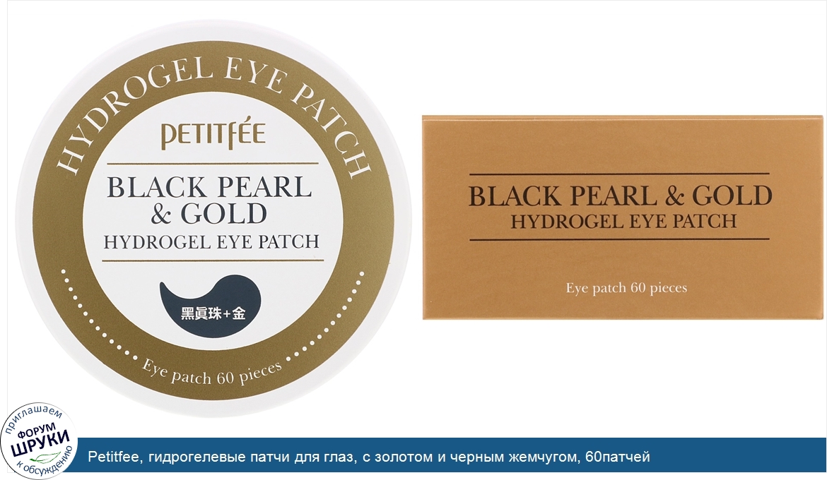 Petitfee, гидрогелевые патчи для глаз, с золотом и черным жемчугом, 60патчей