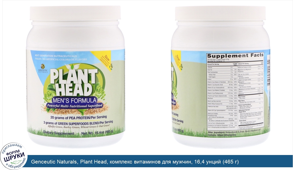 Друзья, если у вас есть отзыв/дополнение/комментарий/вопрос относительно Genceutic Naturals, Plant Head, комплекс витаминов для мужчин, 16,4 унций (465 г) - напишите его ответом в эту тему (это будет полезно всему сообществу в целом и вам в отдельности).