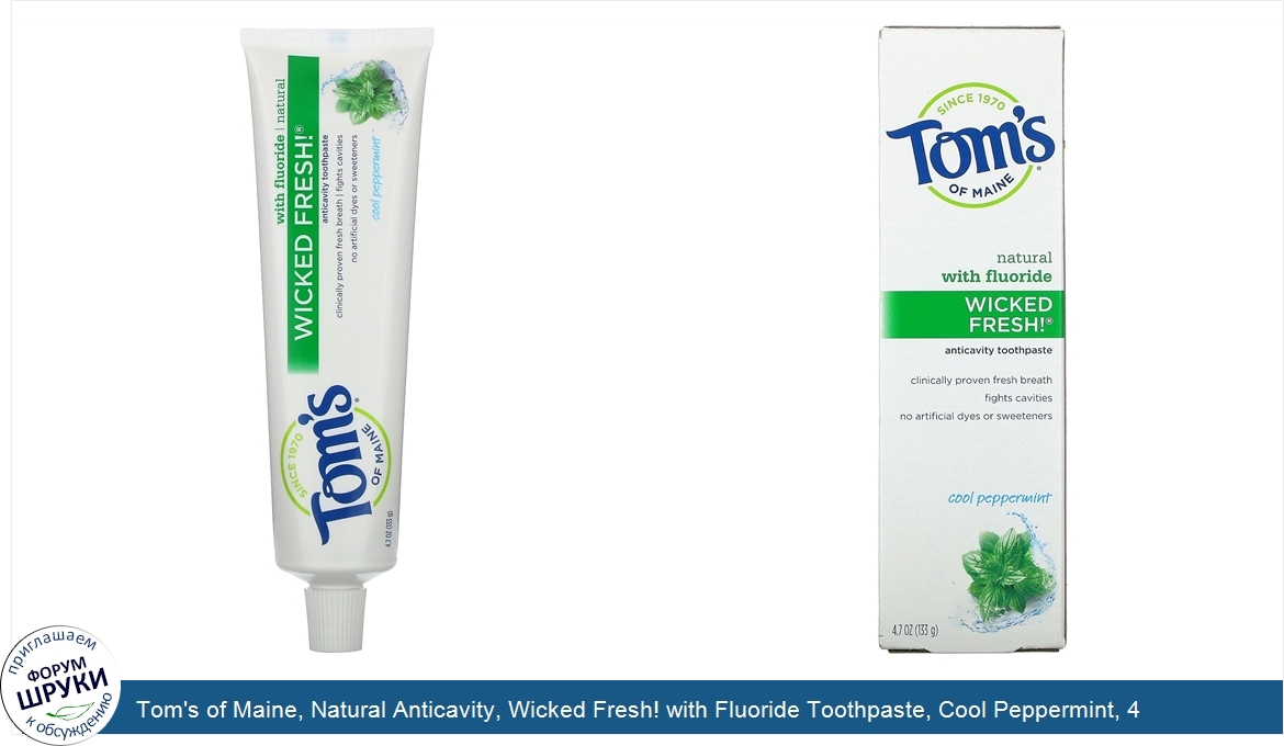 ru Tom's of Maine, Natural Anticavity, Wicked Fresh! with Fluoride Toothpaste, Cool Peppermint, 4.7 oz (133 g)