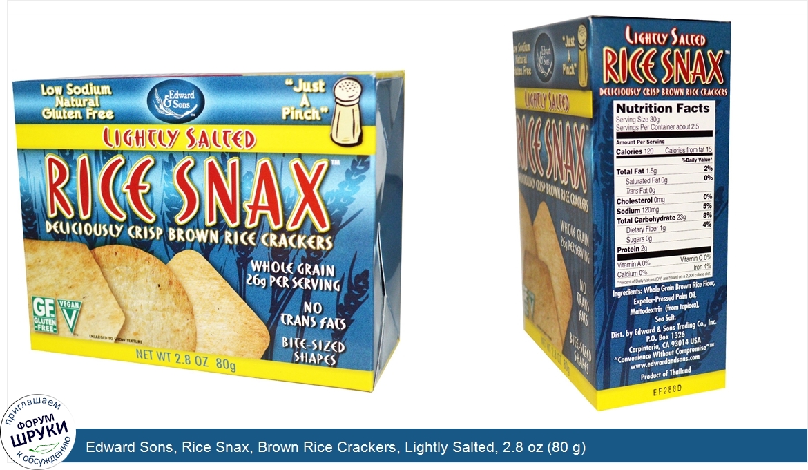 Друзья, если у вас есть отзыв/дополнение/комментарий/вопрос относительно Edward Sons, Rice Snax, Brown Rice Crackers, Lightly Salted, 2.8 oz (80 g) - напишите его ответом в эту тему (это будет полезно всему сообществу в целом и вам в отдельности).