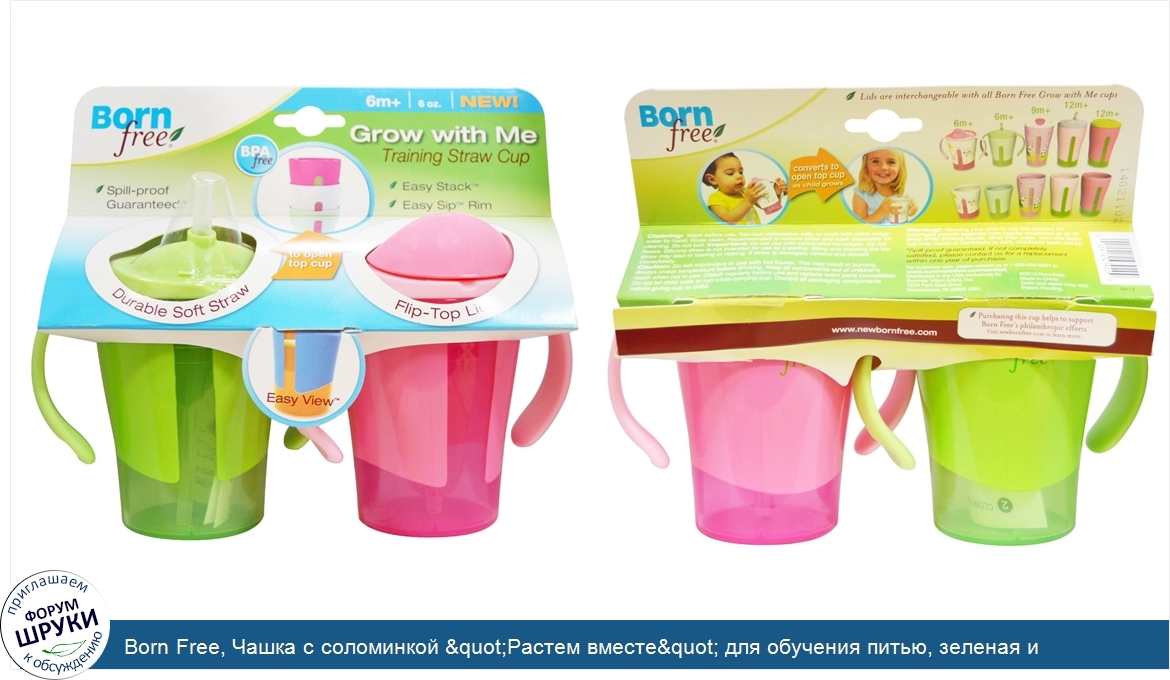 Друзья, если у вас есть отзыв/дополнение/комментарий/вопрос относительно Born Free, Чашка с соломинкой "Растем вместе" для обучения питью, зеленая и розовая, 2 чашки по 180 мл - напишите его ответом в эту тему (это будет полезно всему сообществу в целом и вам в отдельности).