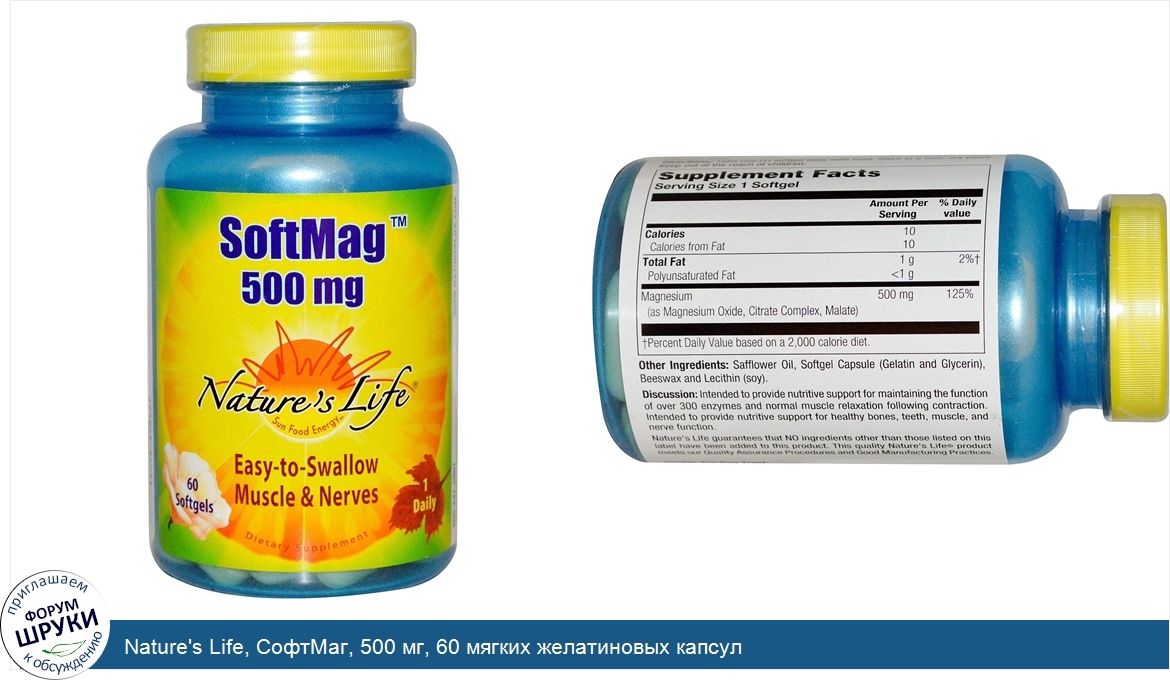 Nature's Life, СофтМаг, 500 мг, 60 мягких желатиновых капсул