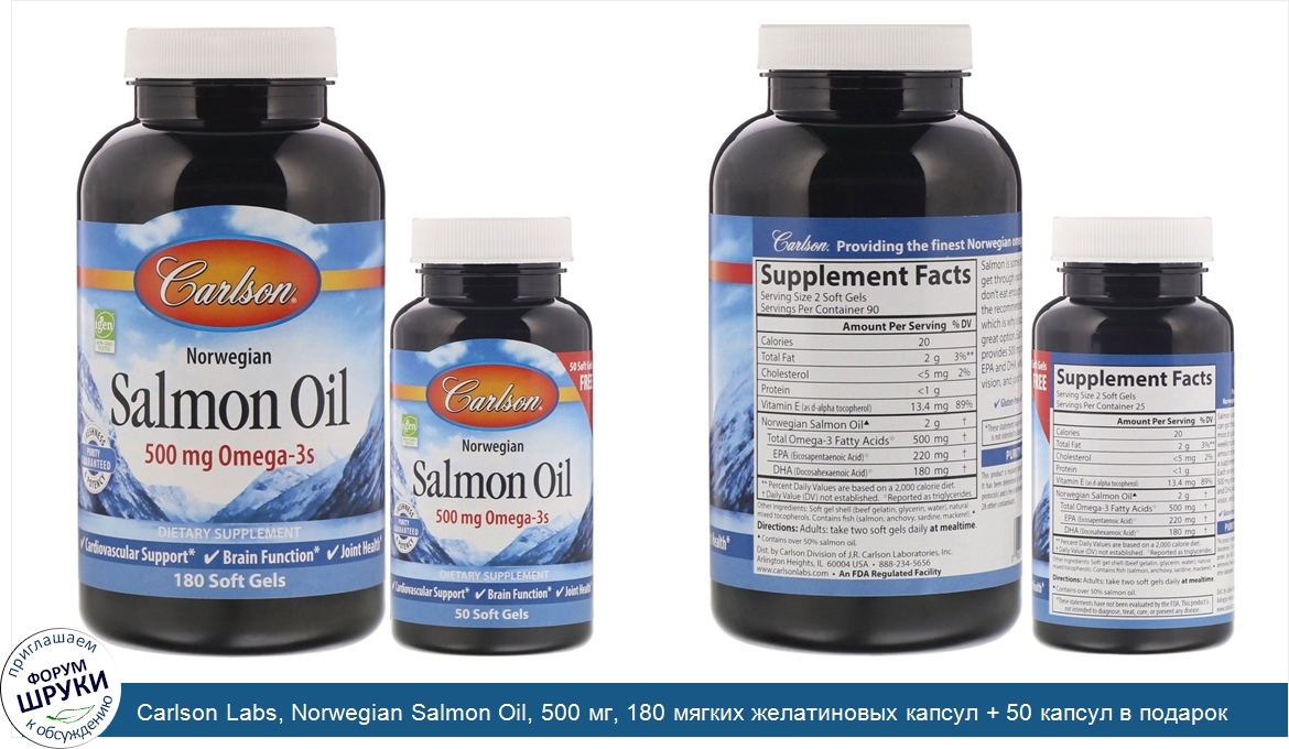 Друзья, если у вас есть отзыв/дополнение/комментарий/вопрос относительно Carlson Labs, Norwegian Salmon Oil, 500 мг, 180 мягких желатиновых капсул + 50 капсул в подарок - напишите его ответом в эту тему (это будет полезно всему сообществу в целом и вам в отдельности).