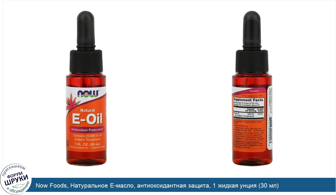 Друзья, если у вас есть отзыв/дополнение/комментарий/вопрос относительно Now Foods, Натуральное E-масло, антиоксидантная защита, 1 жидкая унция (30 мл) - напишите его ответом в эту тему (это будет полезно всему сообществу в целом и вам в отдельности).
