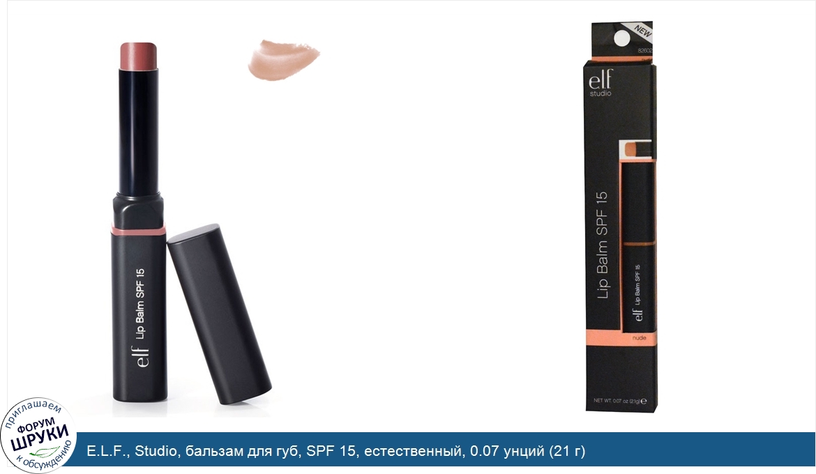 Друзья, если у вас есть отзыв/дополнение/комментарий/вопрос относительно E.L.F., Studio, бальзам для губ, SPF 15, естественный, 0.07 унций (21 г) - напишите его ответом в эту тему (это будет полезно всему сообществу в целом и вам в отдельности).