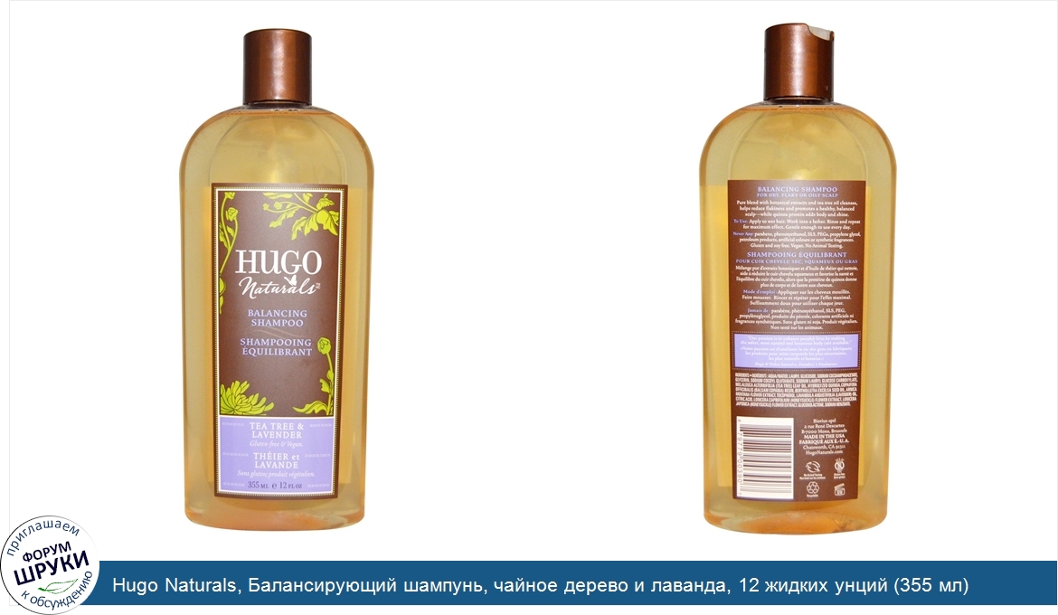 ru Hugo Naturals, Балансирующий шампунь, чайное дерево и лаванда, 12 жидких унций (355 мл)