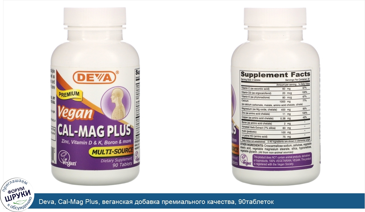 Друзья, если у вас есть отзыв/дополнение/комментарий/вопрос относительно Deva, Cal-Mag Plus, веганская добавка премиального качества, 90таблеток - напишите его ответом в эту тему (это будет полезно всему сообществу в целом и вам в отдельности).