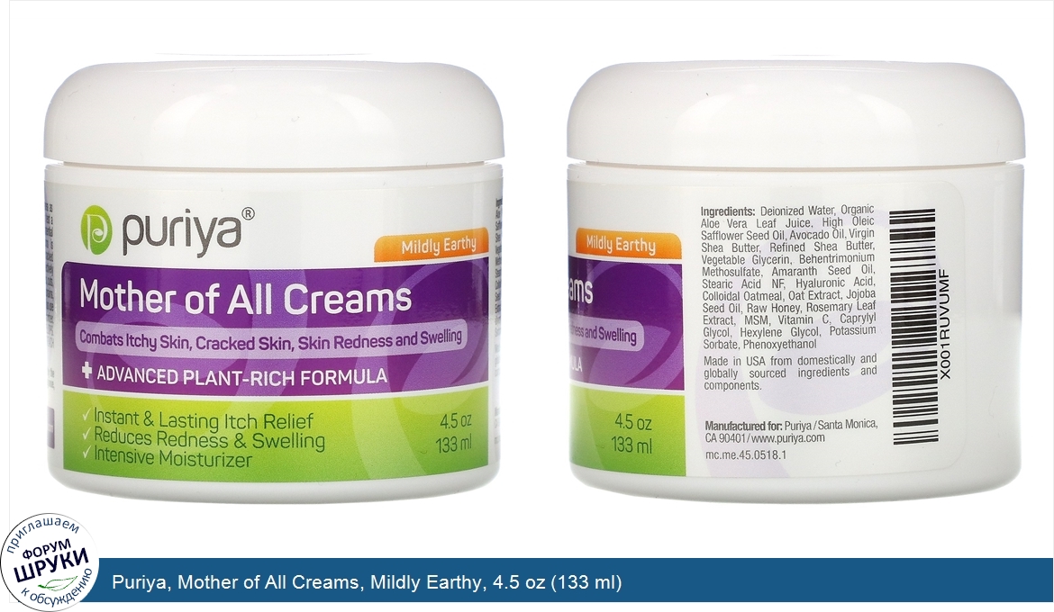 Друзья, если у вас есть отзыв/дополнение/комментарий/вопрос относительно Puriya, Mother of All Creams, Mildly Earthy, 4.5 oz (133 ml) - напишите его ответом в эту тему (это будет полезно всему сообществу в целом и вам в отдельности).