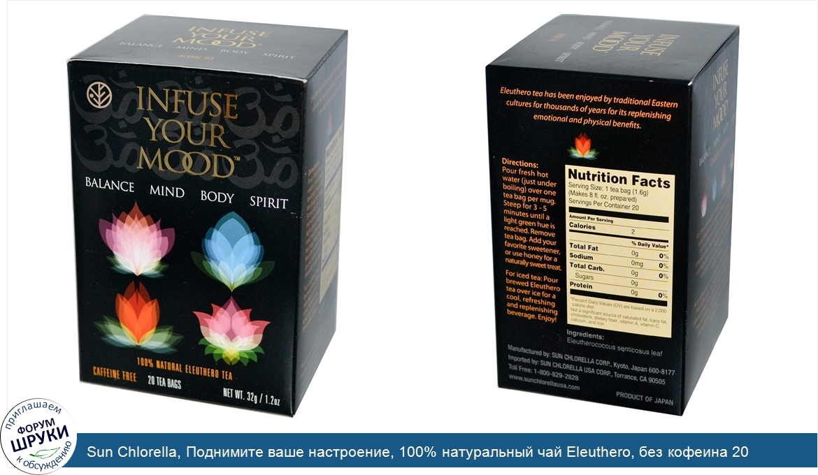 Sun Chlorella, Поднимите ваше настроение, 100% натуральный чай Eleuthero, без кофеина 20 чайных пакетиков, 1.2 унции (32 г)