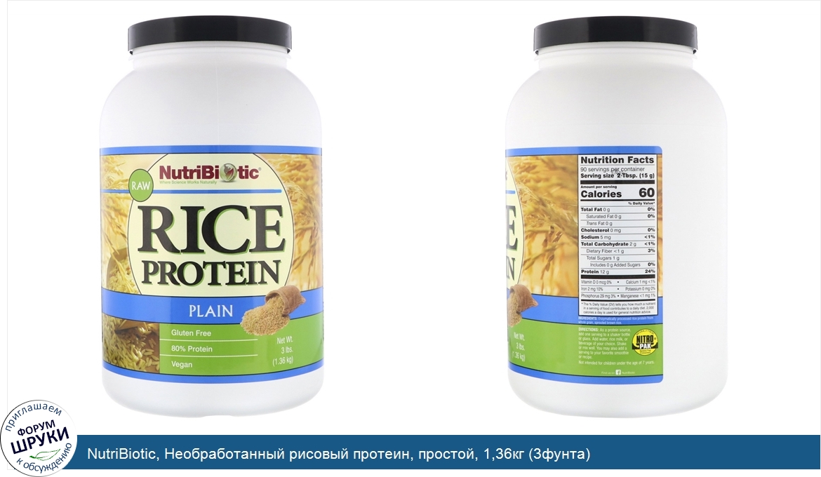 Друзья, если у вас есть отзыв/дополнение/комментарий/вопрос относительно NutriBiotic, Необработанный рисовый протеин, простой, 1,36кг (3фунта) - напишите его ответом в эту тему (это будет полезно всему сообществу в целом и вам в отдельности).