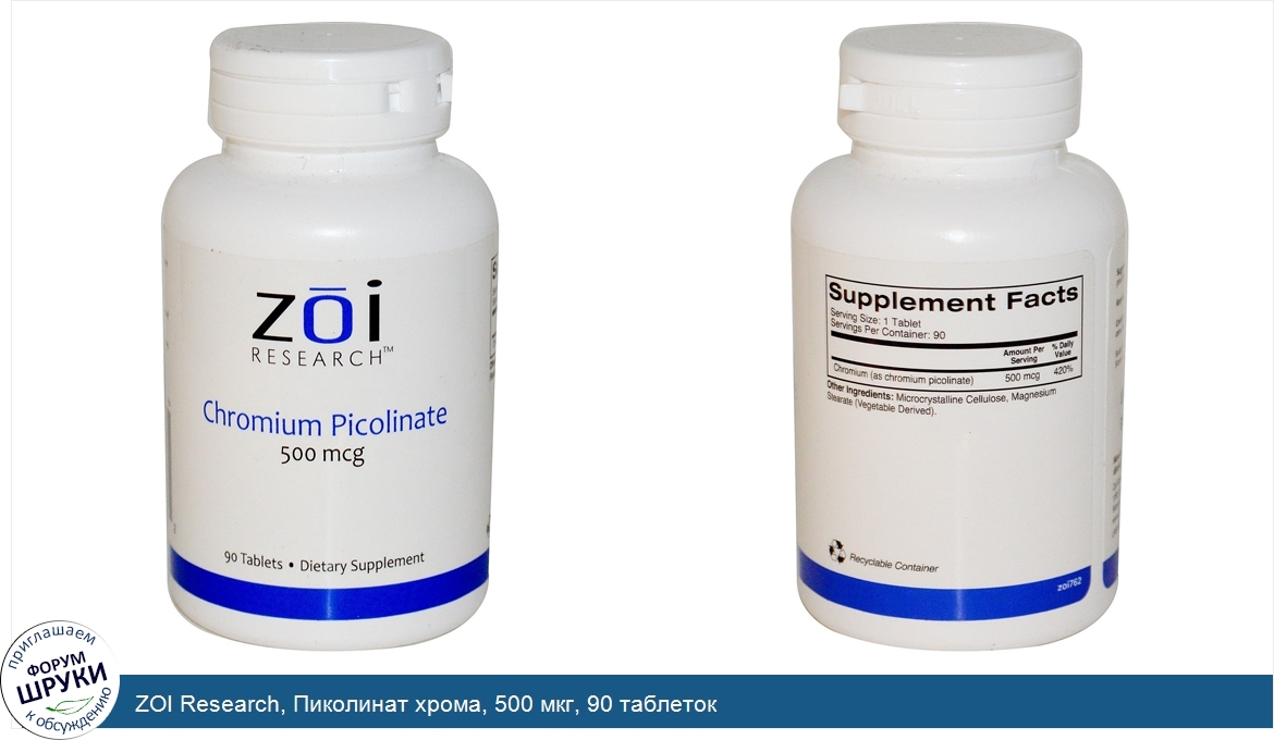ZOI Research, Пиколинат хрома, 500 мкг, 90 таблеток