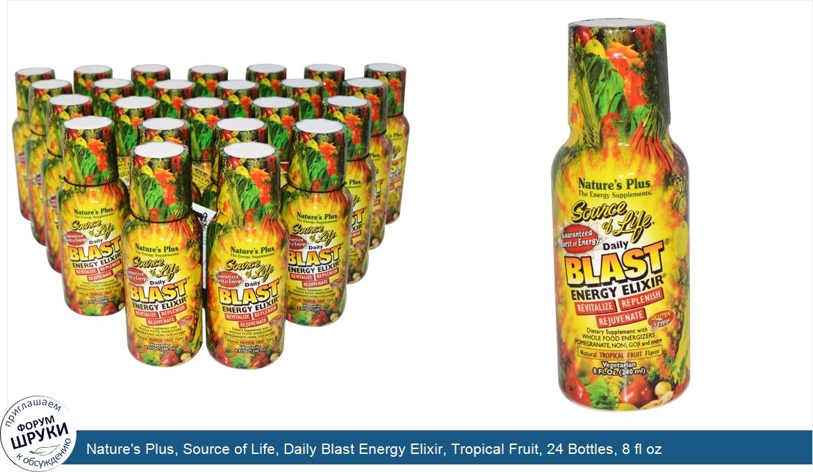 Друзья, если у вас есть отзыв/дополнение/комментарий/вопрос относительно Nature's Plus, Source of Life, Daily Blast Energy Elixir, Tropical Fruit, 24 Bottles, 8 fl oz (240 ml) Each - напишите его ответом в эту тему (это будет полезно всему сообществу в целом и вам в отдельности).