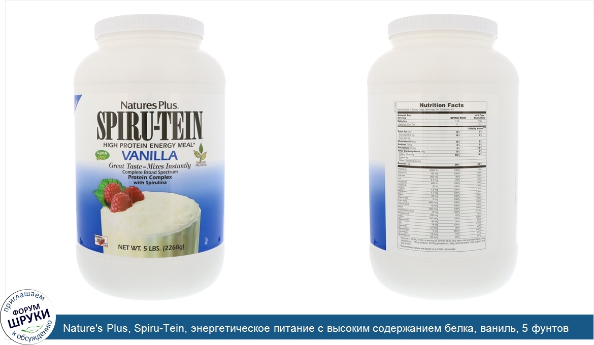 Друзья, если у вас есть отзыв/дополнение/комментарий/вопрос относительно Nature's Plus, Spiru-Tein, энергетическое питание с высоким содержанием белка, ваниль, 5 фунтов (2268 г) - напишите его ответом в эту тему (это будет полезно всему сообществу в целом и вам в отдельности).