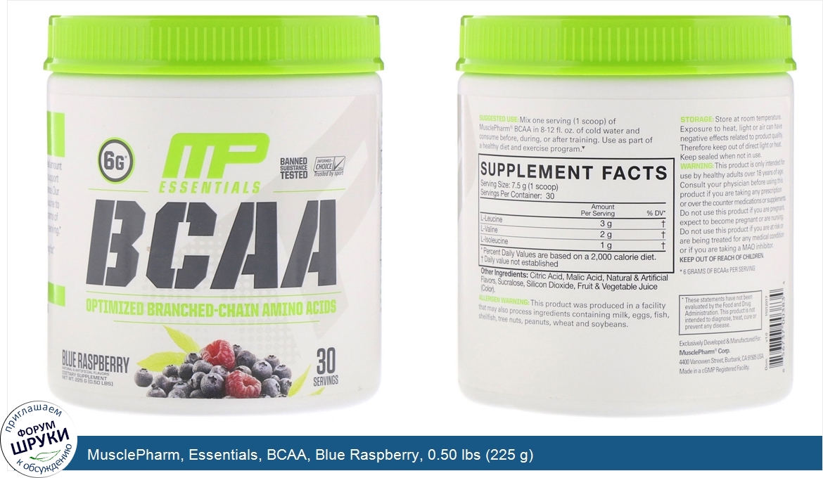 ru MusclePharm, Essentials, BCAA, Blue Raspberry, 0.50 lbs (225 g)