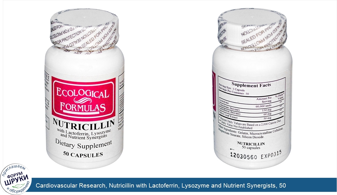Cardiovascular Research, Nutricillin with Lactoferrin, Lysozyme and Nutrient Synergists, 50 Capsules