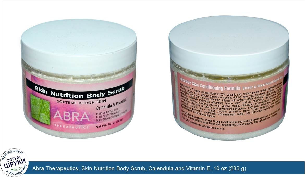 Друзья, если у вас есть отзыв/дополнение/комментарий/вопрос относительно Abra Therapeutics, Skin Nutrition Body Scrub, Calendula and Vitamin E, 10 oz (283 g) - напишите его ответом в эту тему (это будет полезно всему сообществу в целом и вам в отдельности).