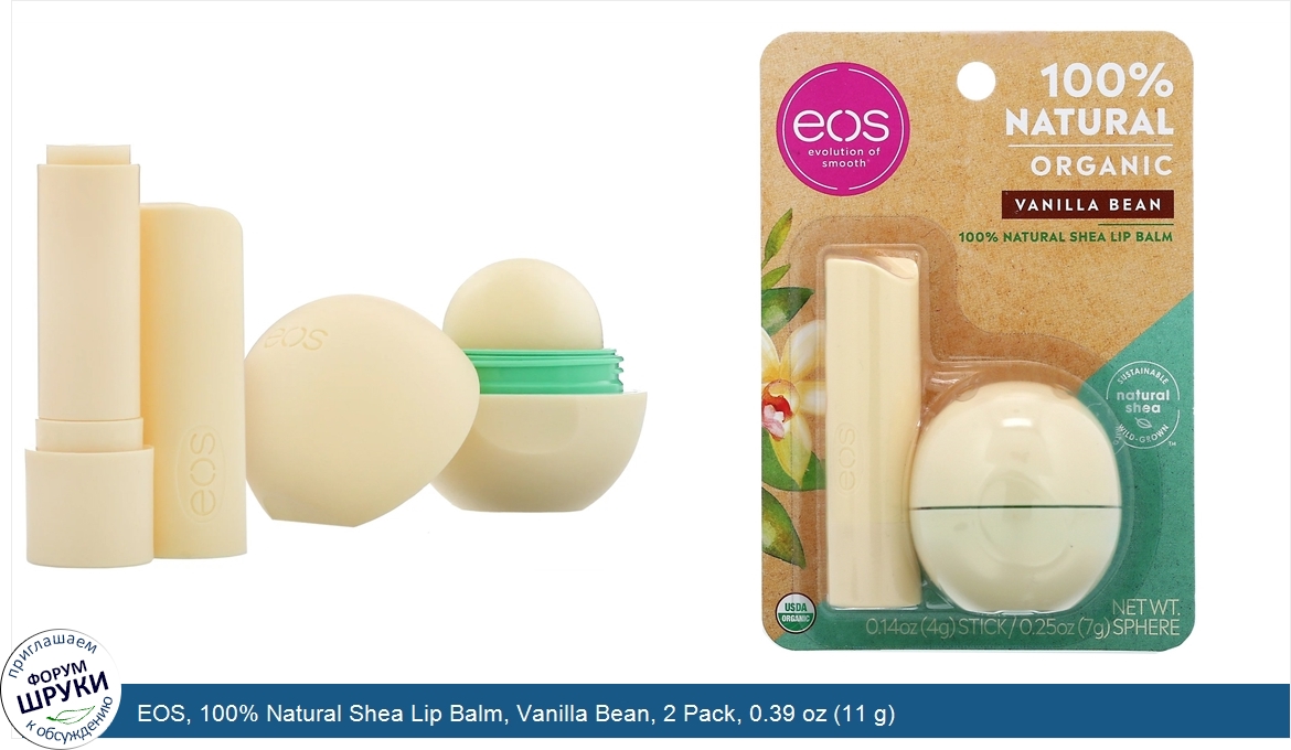 Друзья, если у вас есть отзыв/дополнение/комментарий/вопрос относительно EOS, 100% Natural Shea Lip Balm, Vanilla Bean, 2 Pack, 0.39 oz (11 g) - напишите его ответом в эту тему (это будет полезно всему сообществу в целом и вам в отдельности).