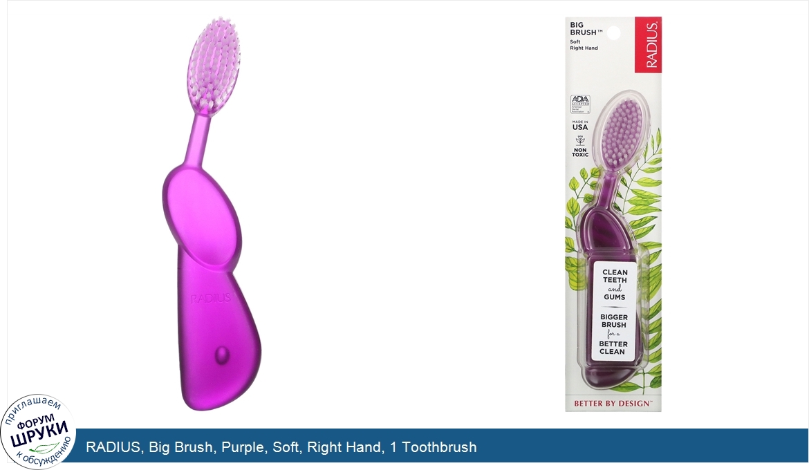 Друзья, если у вас есть отзыв/дополнение/комментарий/вопрос относительно RADIUS, Big Brush, Purple, Soft, Right Hand, 1 Toothbrush - напишите его ответом в эту тему (это будет полезно всему сообществу в целом и вам в отдельности).